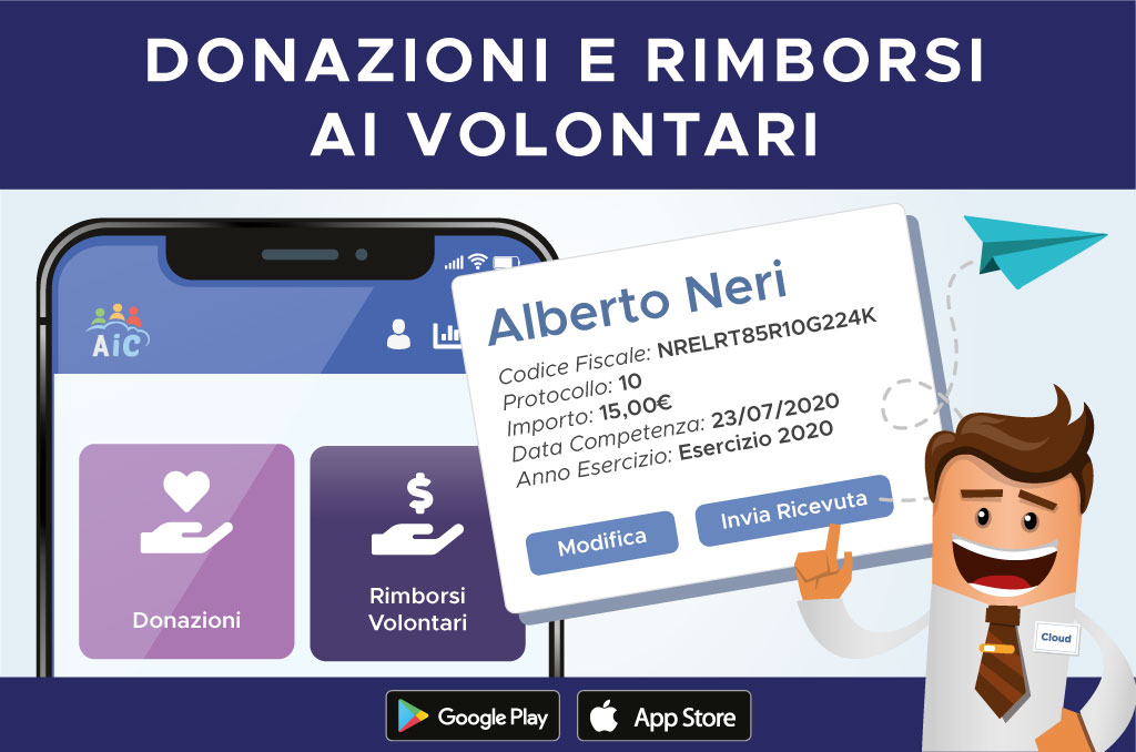 *i servizi relativi alle donazioni e ai rimborsi ai volontari in app sono dedicati ai clienti con accesso alla piattaforma AssociazioneInCloud