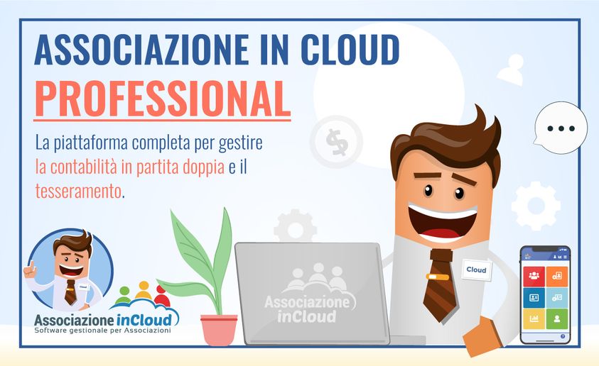 AssociazioneInCloud PROFESSIONAL: la piattaforma COMPLETA per gestire la CONTABILITÀ IN PARTITA DOPPIA e il TESSERAMENTO.Possibilità di predisposizione del Bilancio secondo gli schemi ministeriali.