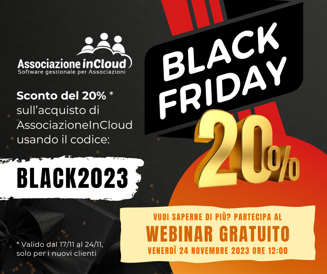 - Il Black Friday è arrivato! Sconto del 20% su AssociazioneInCloud 17/11/2023 10:28