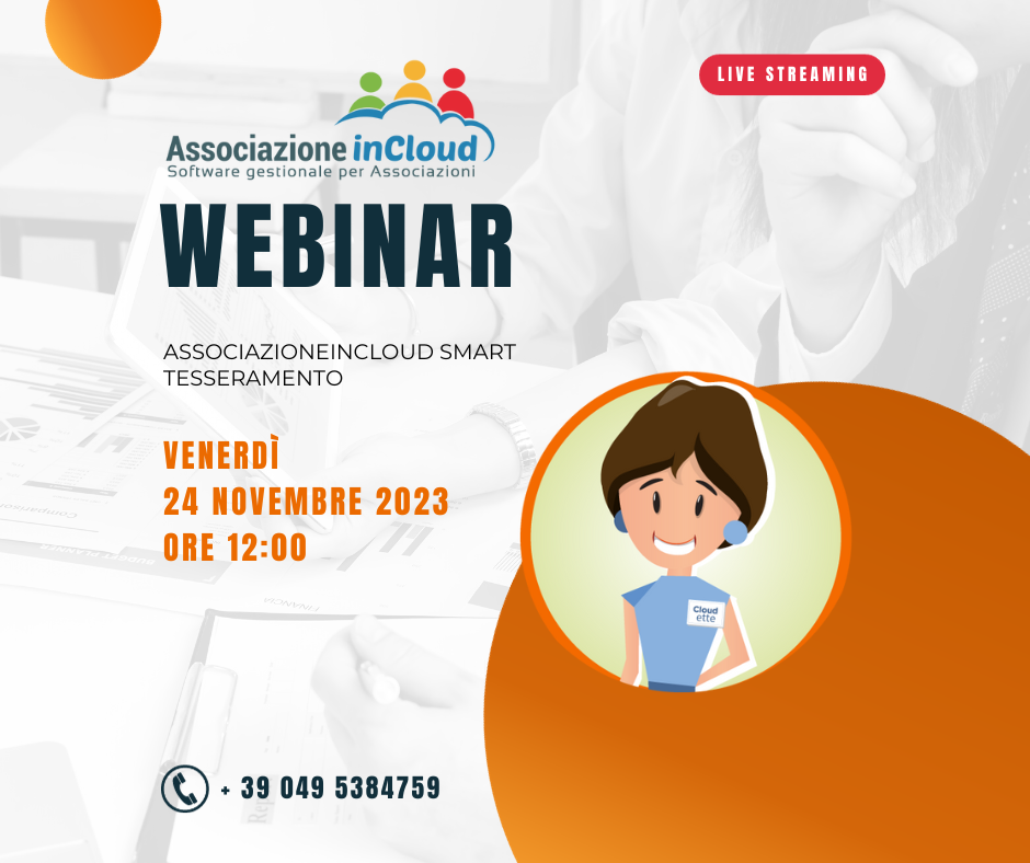 - Webinar gratuito: Gestisci il tesseramento con AssociazioneInCloud SMART 20/11/2023 12:03